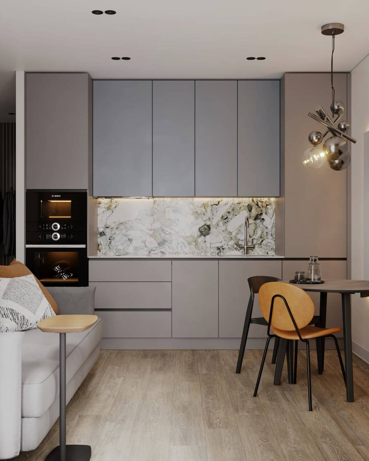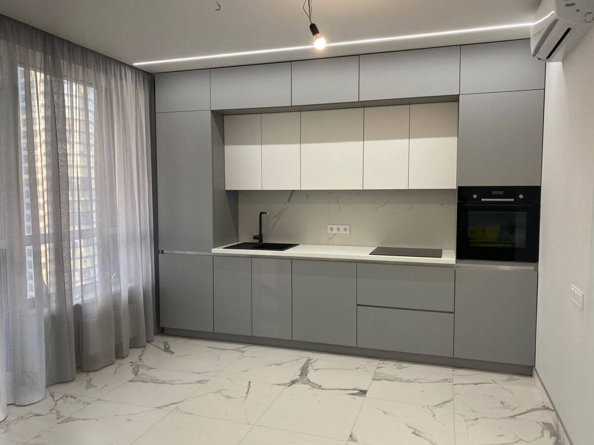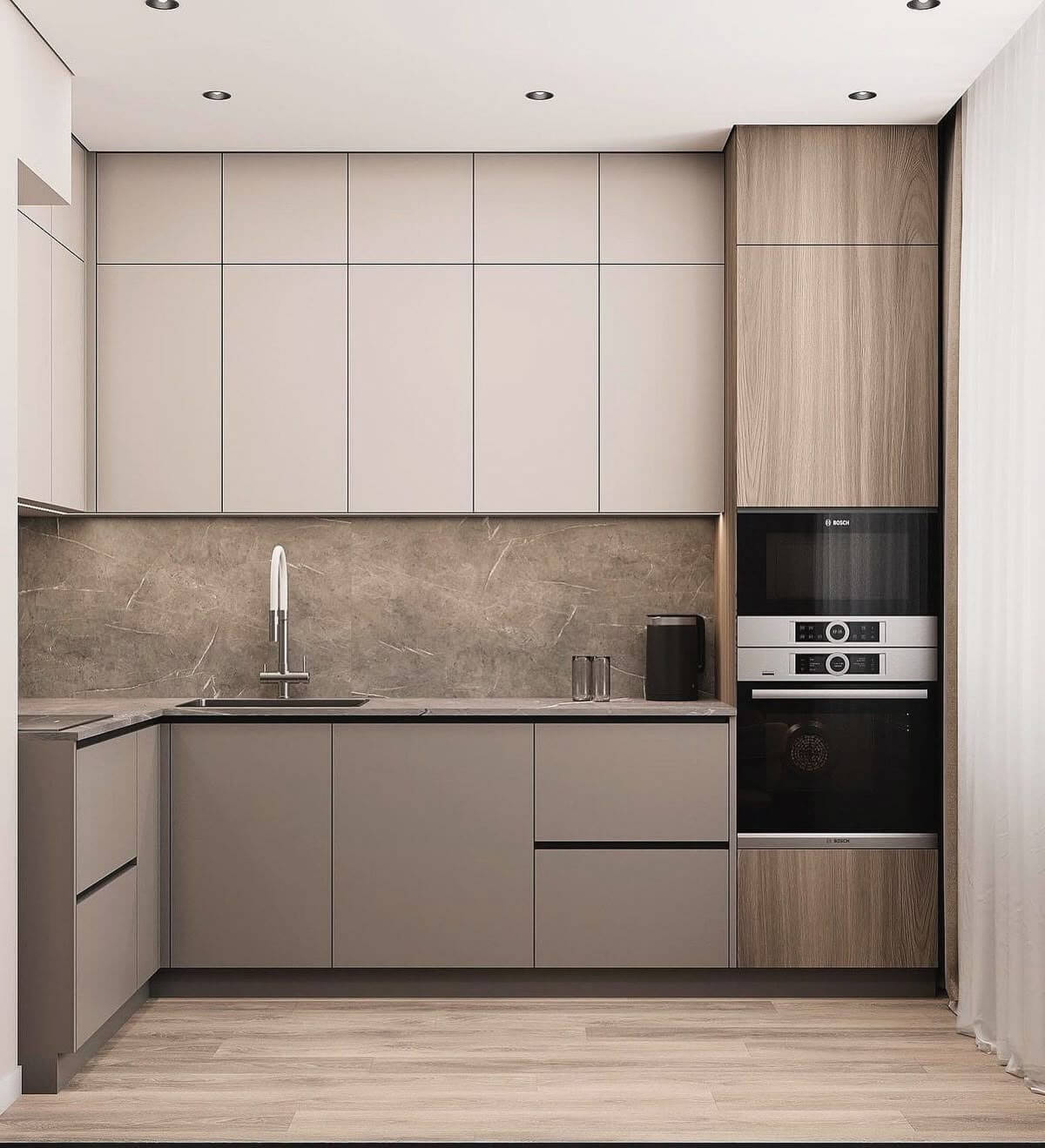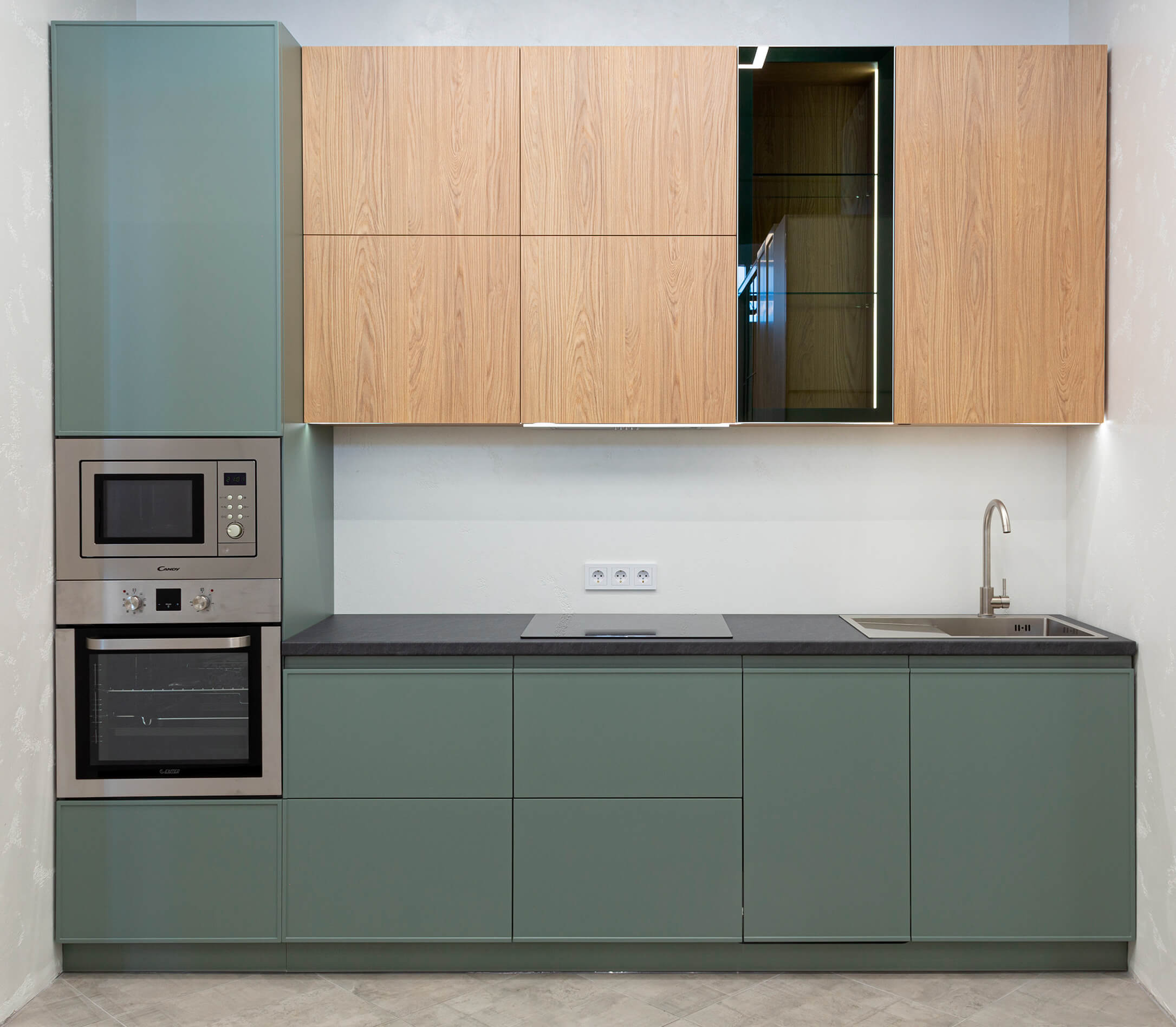 Фасады: МДФ крашеный матовый с фрезеровкой + Egger с текстурой дерева