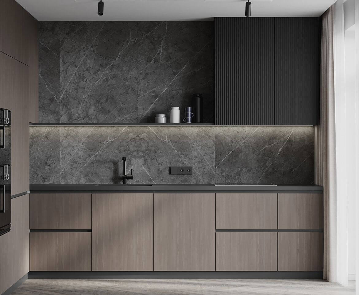 Фасады: ЛДСП Egger Антрацит + Egger Камень Пьетра