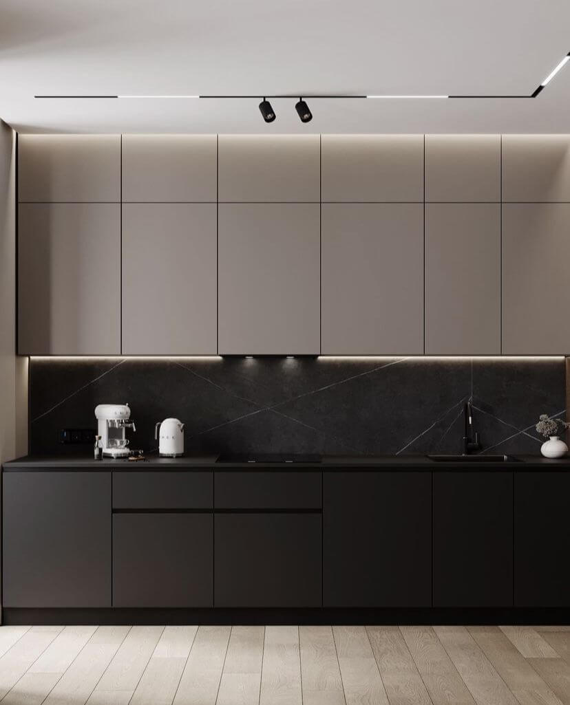 Фасады: ЛДСП Egger Кубанит серый + Камель бежевый
